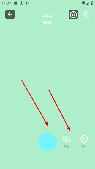 2、在拍攝頁(yè)面點(diǎn)擊拍攝按鈕錄制視頻,還能使用濾鏡水印等工具美化拍攝內(nèi)容。